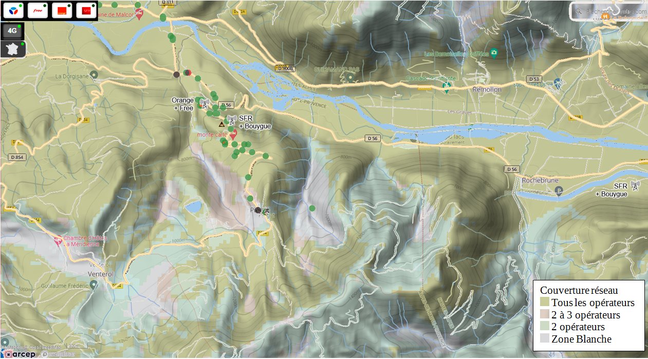 (voir le détail de nos investigations dans cet article : Point sur la couverture 4G avec la nouvelle antenne de Venterol)