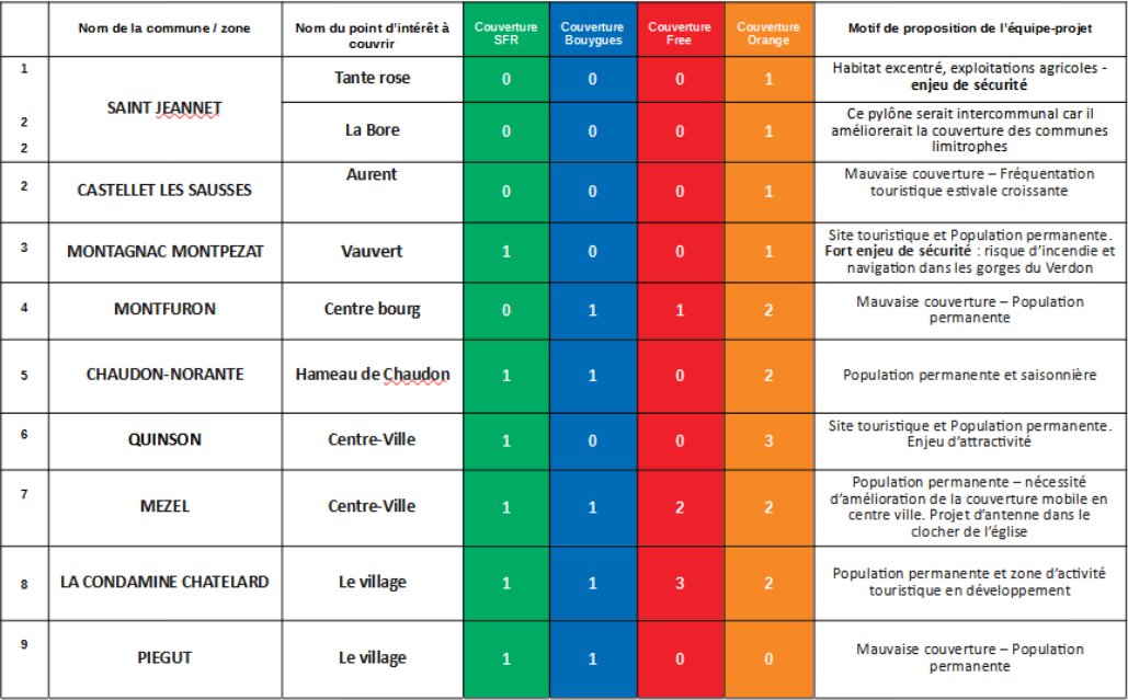 L’operateur a obligation de couvrir les deux points d’intérêts indiqué sur cette carte :