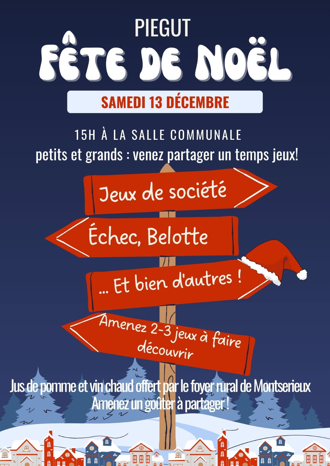 Suivi d’un vin chaud/jus de fruits chaud à partager ensemble samedi 13 décembre 2025 à partir de 15h00 à la salle communale de Piégut.