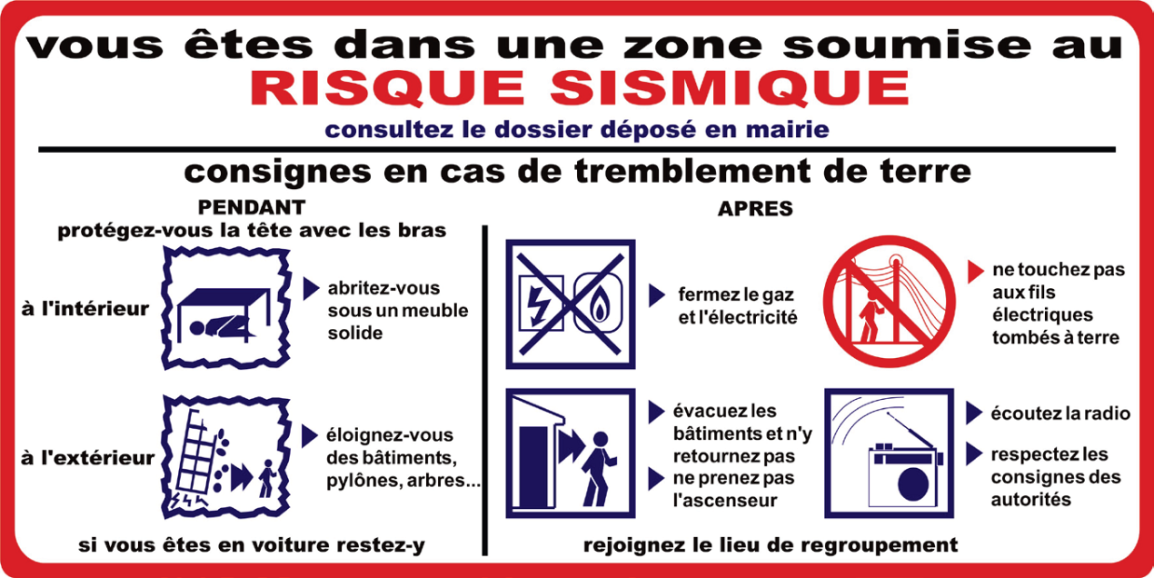 Des normes parasismiques et un zonage sismique de la région impose l’application de règles de constructions parasismiques pour les zones les plus exposées et la prise en compte du risque dans les documents d’urbanisme.