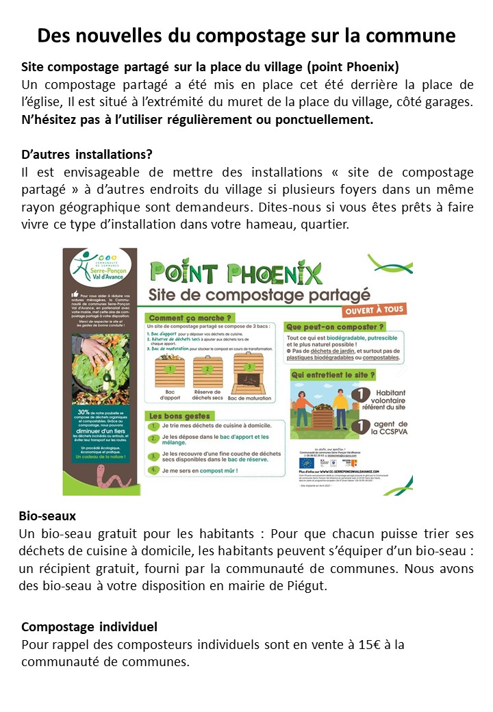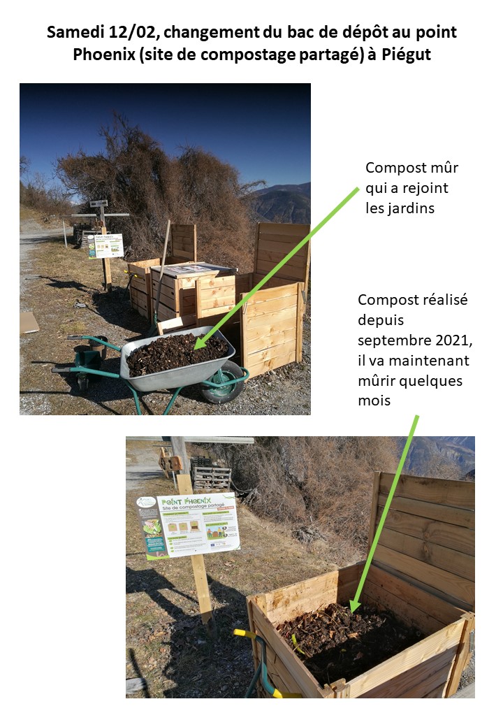 Samedi 12/02, changement du bac de dépôt au point Phoenix (site de compostage partagé) à Piégut