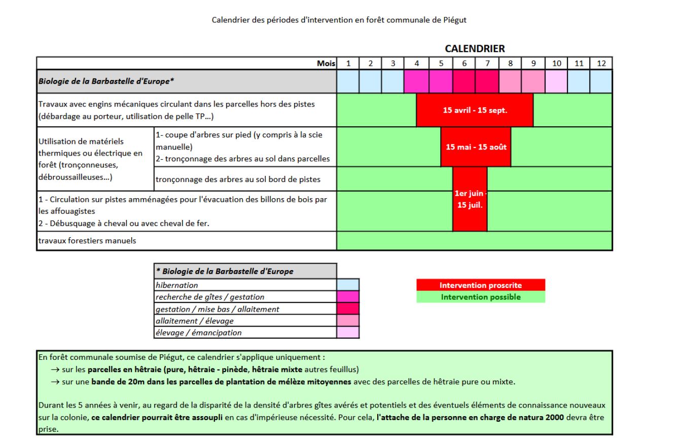 calendrier des périodes d’intervention en forêt communale de Piégut, pour la coupe